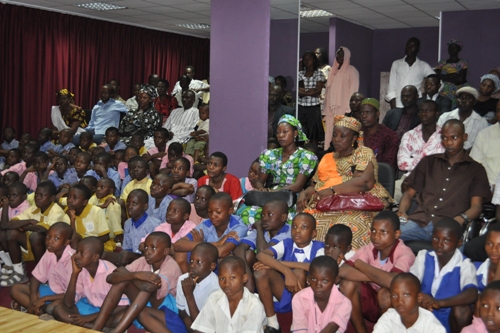 Cross section of pupils,teachers and parents at the Exhibition Hall