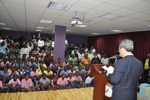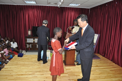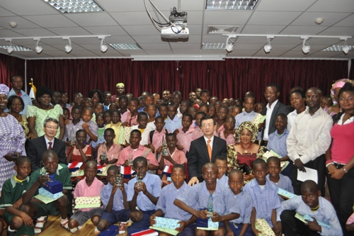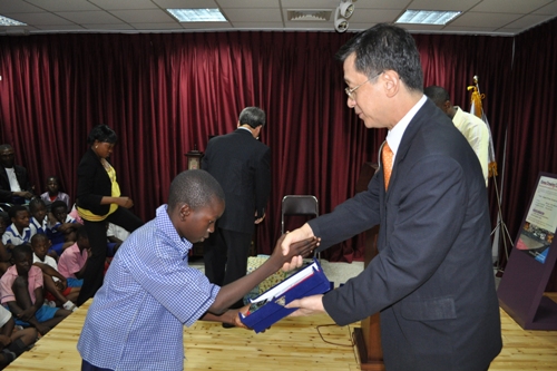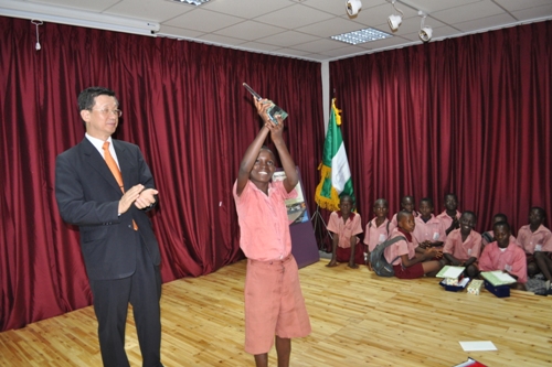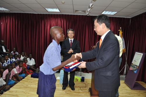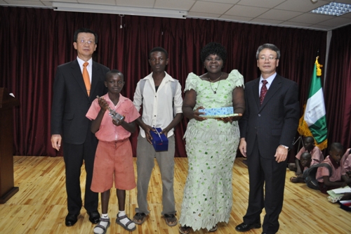L-R Ambassador Park Young-Kuk, First Prize Winner Ilokobi Jidechukwu,his brother,teacher and Mr.Jeong Sun Suh