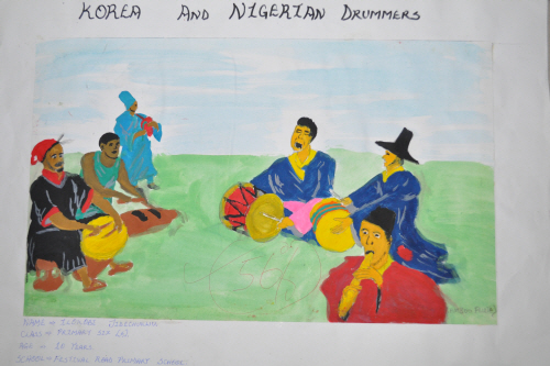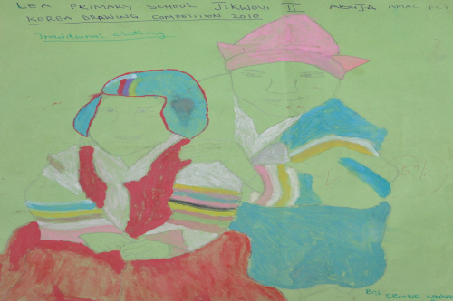 The First Korea Drawing Competition organised by the Korean Cultural Centre Nigeria took place from the April 26th 2010 to May 28th 2010. It was organised for Primary schools in Abuja. Twenty schools participated in the competition as 10 drawings were picked from each school. The 200 drawings were evaluated by National gallery of Art at the end of which 30 winners emerged-1 Gold, 3 Silver and 6 Bronze plus 20 consolation prizes.The presentation of prizes for the competition took place at the Korean Cultural Centre Studio on Tuesday 29th June 2010. In attendence were the Republic of Korea (South Korea) Ambassador to Nigeria, Park Young-Kuk ,Director of UBE, National Gallery of Art (NGA) officials as well as parents and teachers of prize recipients. The prizes for the first ten winners were presented by the Ambassador while the remaining twenty were given out by the Director Korean Cultural Centre Nigeria Mr. Suh, Jeong Sun.