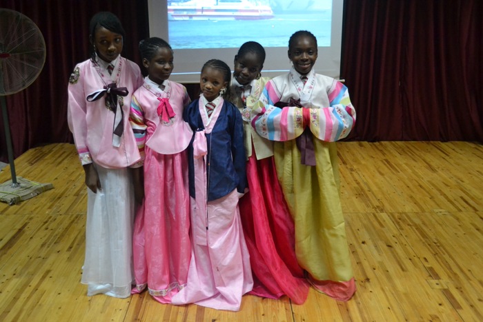 The Hampstead Academy Abuja Visited the Korean Cultural Centre Nigeria today. The group made up of 23 pupils were accompanied by 5 teachers. They were shown a glimpse of the rich and colourful cultural heritage of Korea. They watched a documentary, wore the Korean traditional cloth-Hanbok and had an awesome Taekwondo Experience.