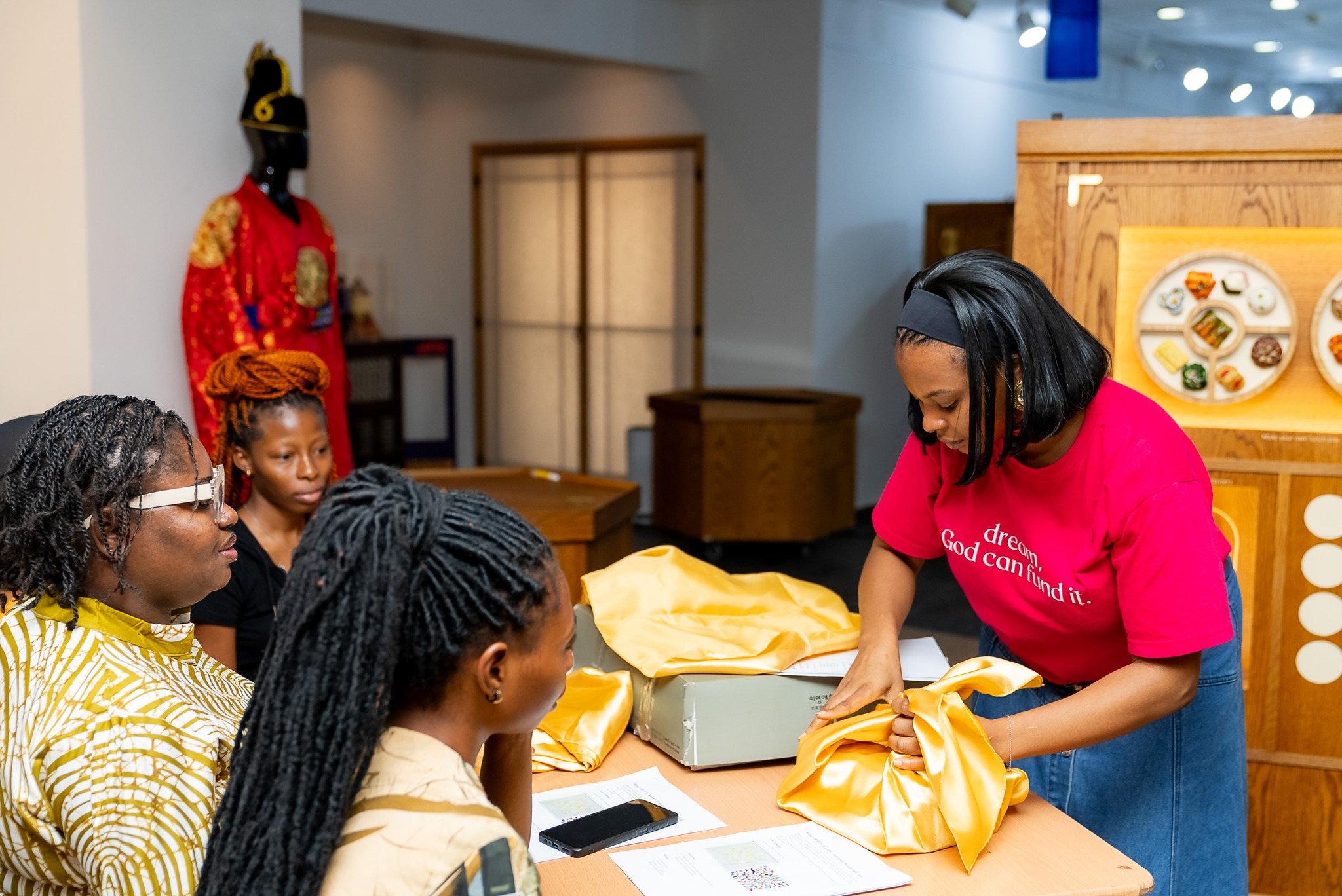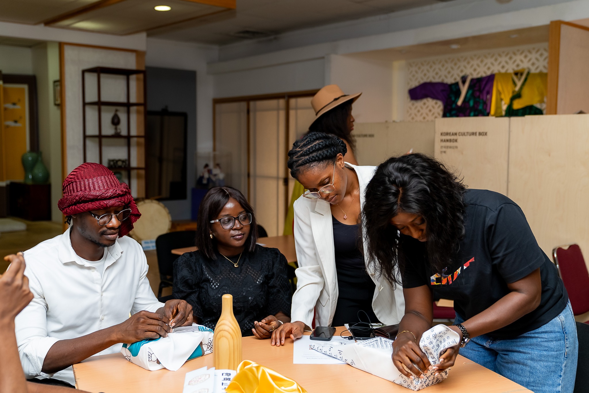 From learning the history and cultural significance of Bojagi to experiencing hands-on wrapping techniques, the afternoon was a meaningful journey into Korean aesthetics, sustainability, and mindful giving.