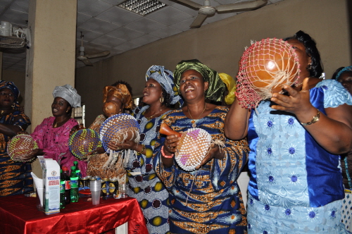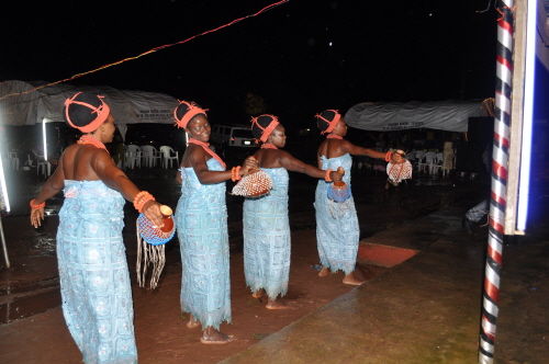 The benin women entertaining the audience