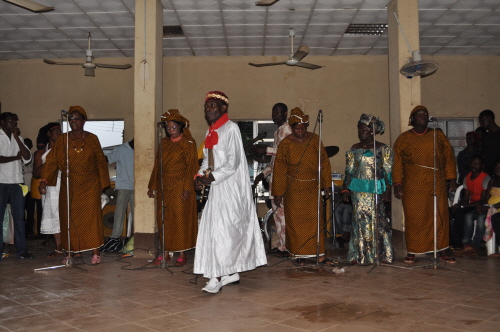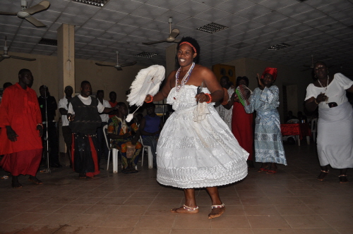 A benin cultural group entertaining the audience