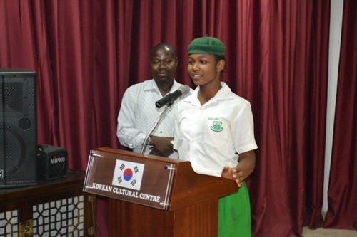 The Head Girl of GGSSS Kuje giving her thoughts on Korea.
