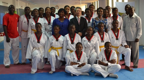 Group Photograph of GSSS Tungan-Maje, GGSSS Kuje and their Teachers with Director, Korean Cultural Centre Nigeria; Mr. Suh Jeong Sun after the Taekwondo session.