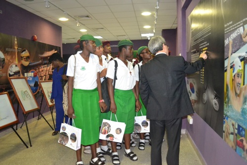 Director, Korean Cultural Centre Nigeria; Mr. Suh Jeong Sun showing the students round the centre.