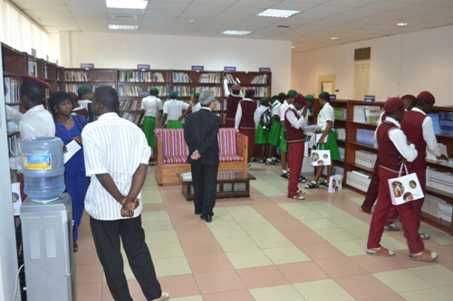 The students looking around the KCCN library.