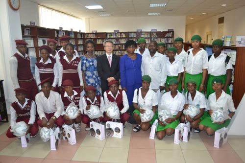 Director, Korean Cultural Centre Nigeria; Mr. Suh Jeong Sun presenting Soccer Ballsto GGSSS Kuje.
